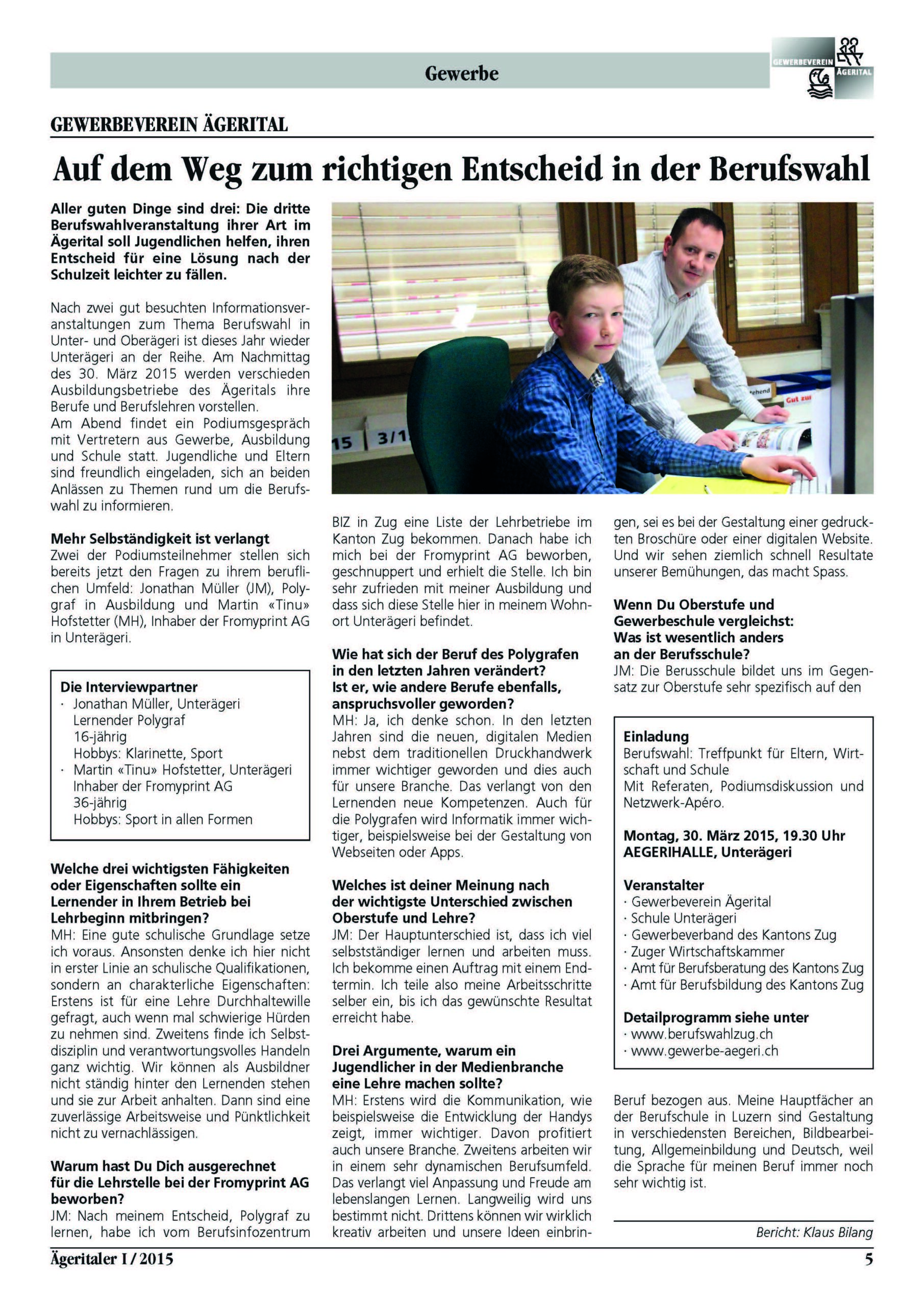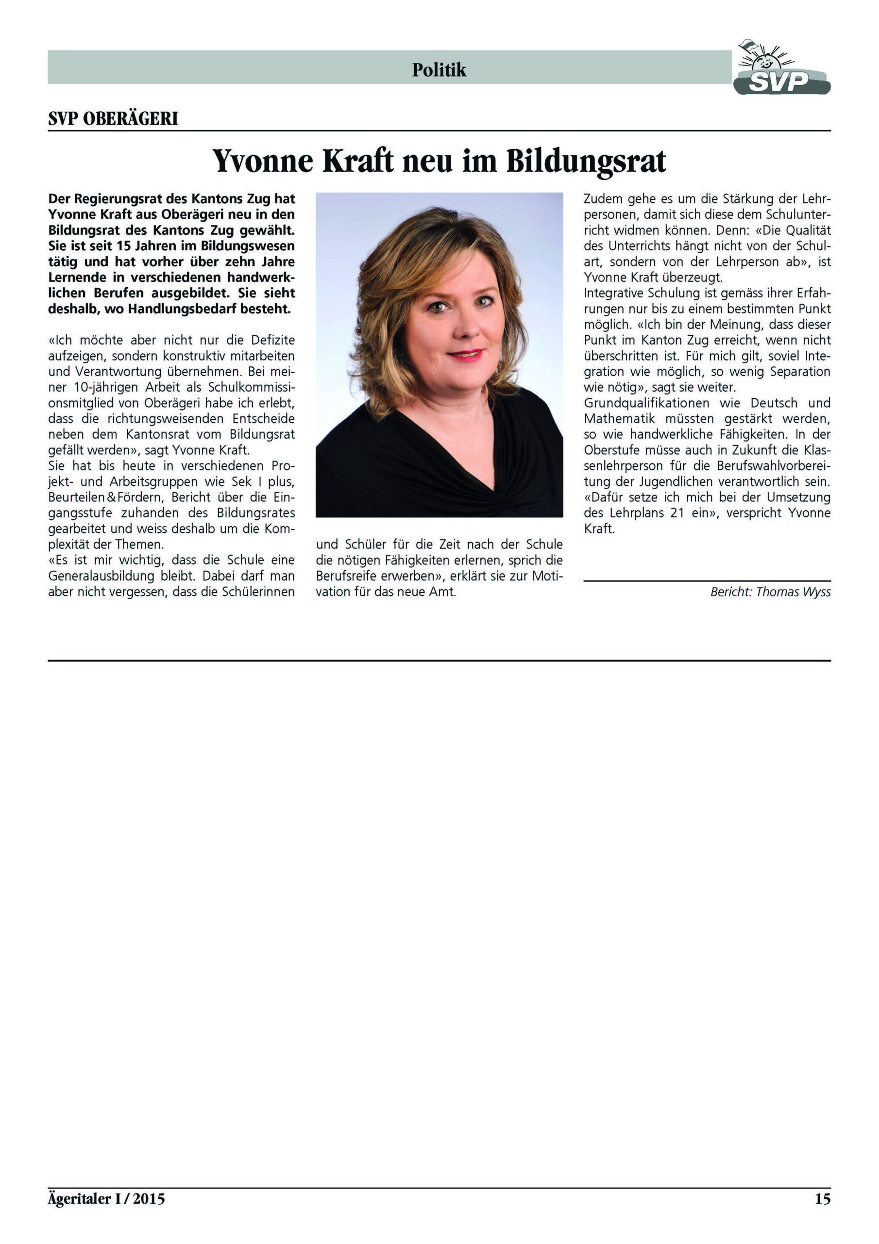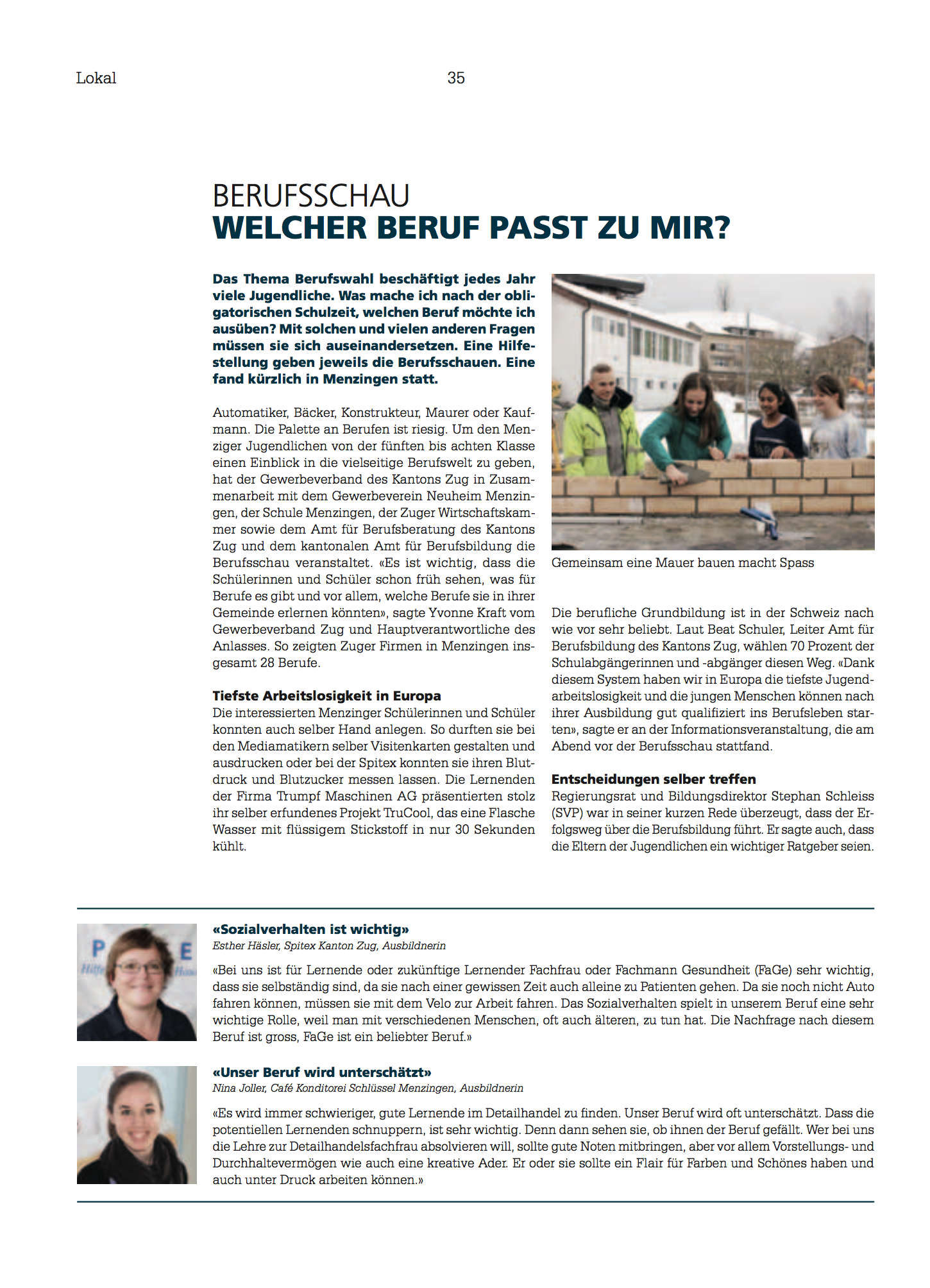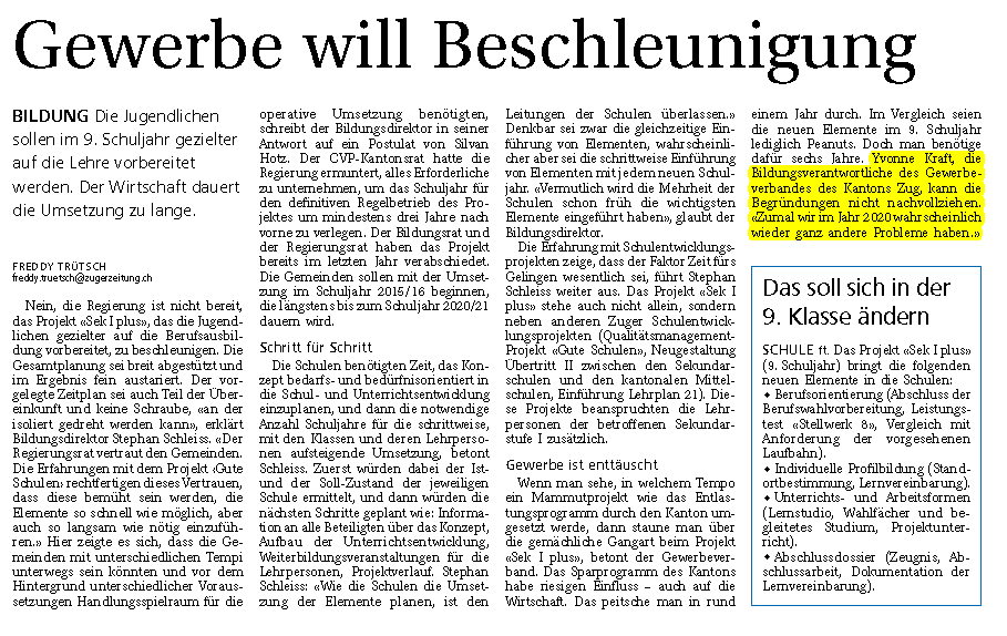 NEUE ZUGER ZEITUNG, NOVEMBER 2014