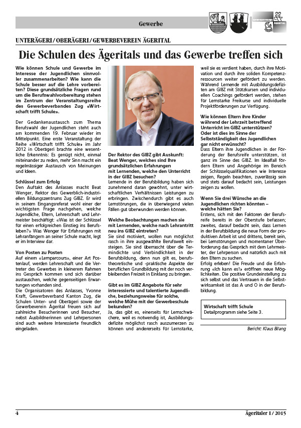 Die Schulen des Ägeritals und das Gewerbe treffen sich